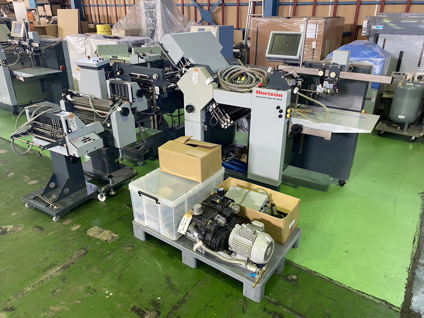 40피드 컨테이너 2대 2024년 4월초 입고 확정안내 입고장비 : HT-110삼면재단기, VAC-100 3타워, SAC-450최신형정합기, 국반절미싱오시기,SPF-20A중철기 2세트, 각종접지기,대형정합기 외 기타 HT-110 최신형 전자동 삼면재단기 (단독형) VAC-300에어정합기 SAC-450고속 최신형정합기 TRC-A2 국반절 정합기 AF-406 자동 꼬마접지기 미싱,점프미싱,오시 전용기 점프미싱 헤드 AFC-504 접지기 접지기,중철기 1구 자동타공기,추림기 등 에어추림기